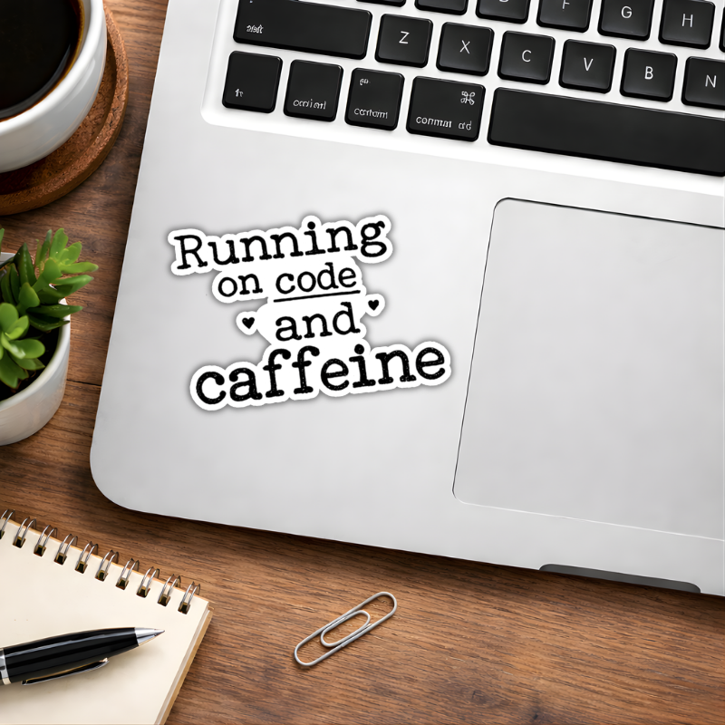 Add a touch of bold personality with our “Code and Caffeine” die-cut sticker. Designed for those who aren’t afraid to stand out, this high-contrast caution decal is as durable as it is eye-catching. Whether it’s your morning coffee tumbler or your trusty laptop, this sticker sends a clear message in style.