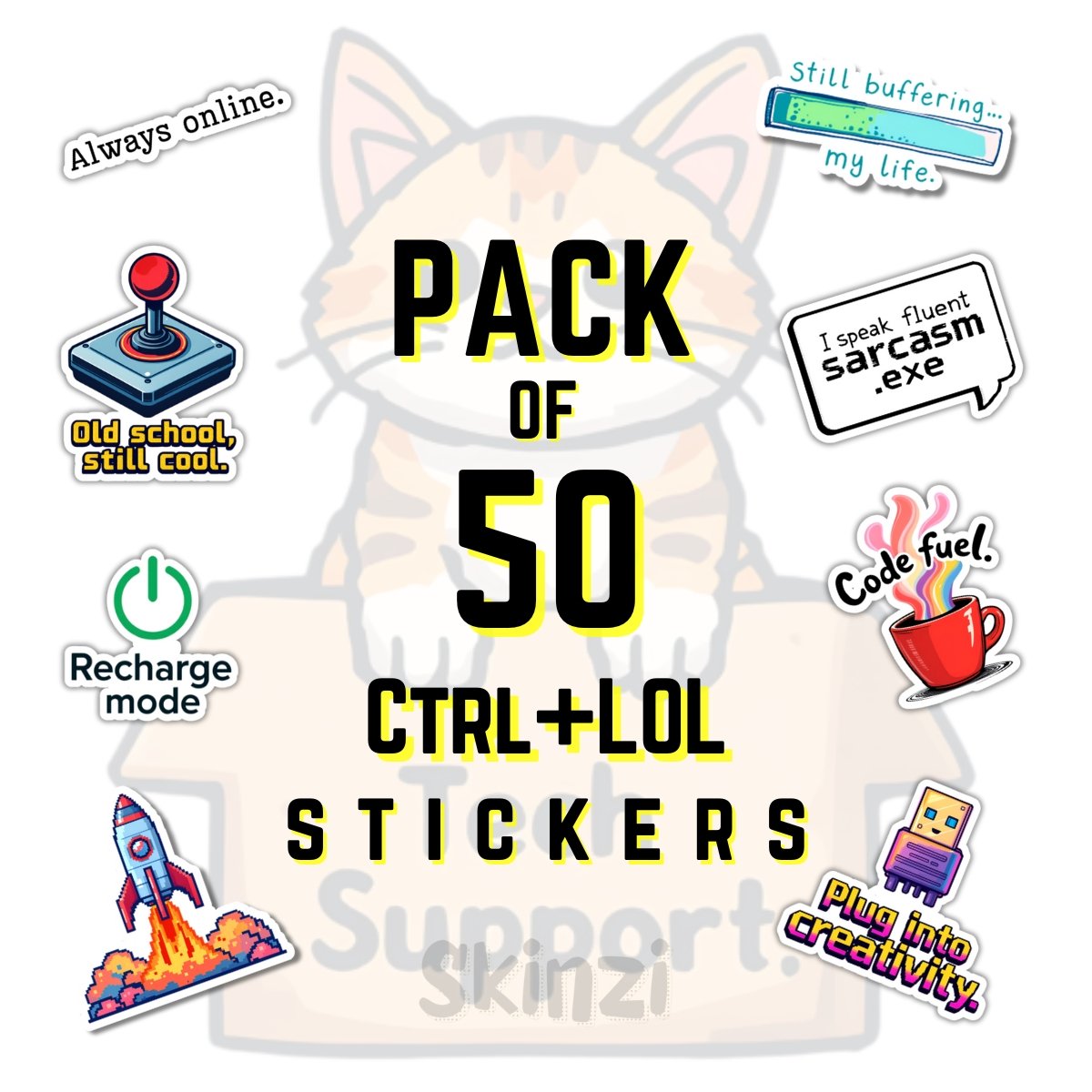 Ctrl+LOL Funny Tech & Meme Sticker Pack | 50+ Geeky Humour Vinyl Stickers