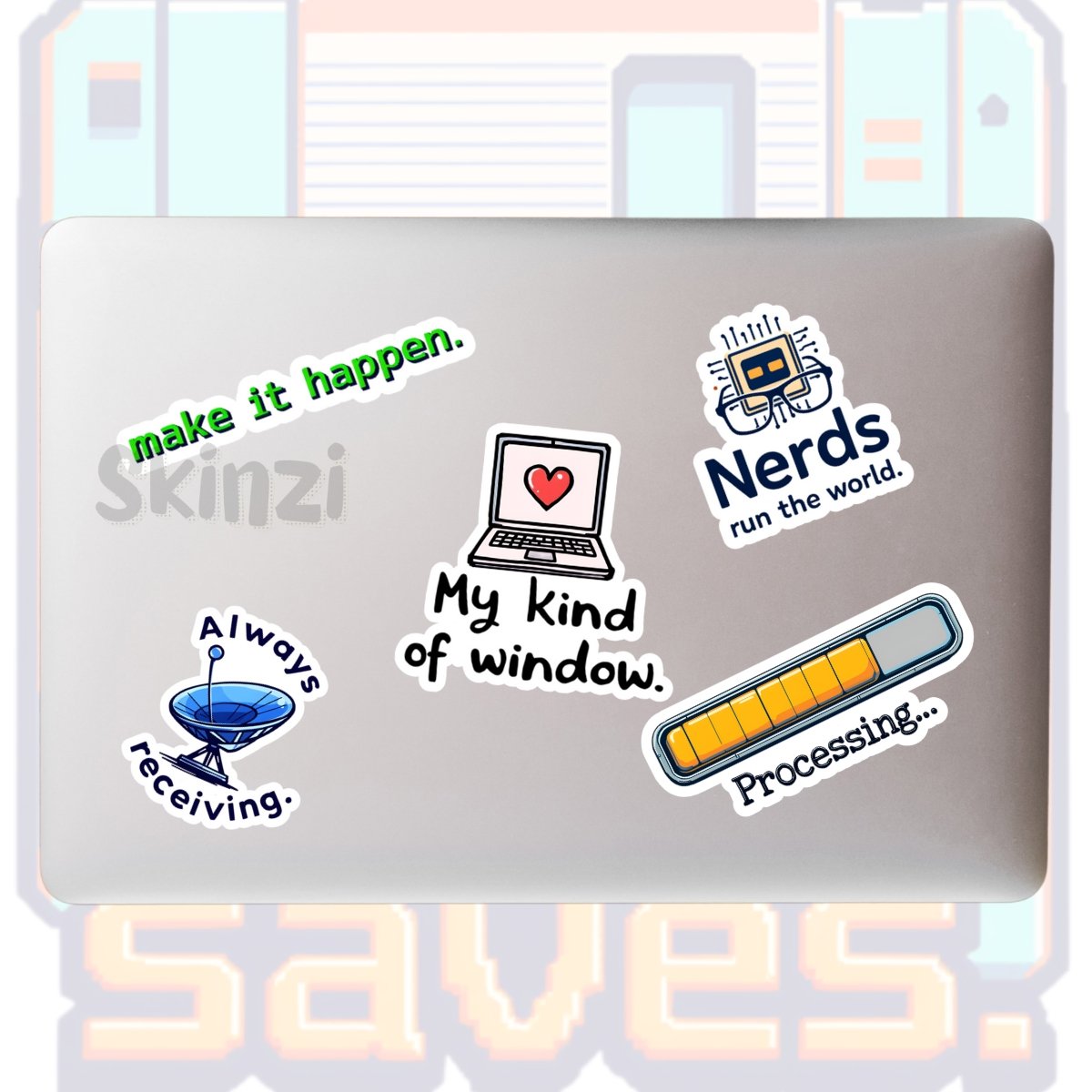 Because life’s too short for boring tech gear. Ctrl+LOL is your ultimate pack of 50+ hilarious, meme-worthy, and geek-approved stickers made for coders, gamers, and anyone who laughs in binary. From sarcastic one-liners to tech inside jokes, these designs bring the LOLs straight to your laptop, tablet, phone, or gaming console. Printed on premium waterproof vinyl, they’re built to survive coffee spills, late-night coding sessions, and snack crumbs.