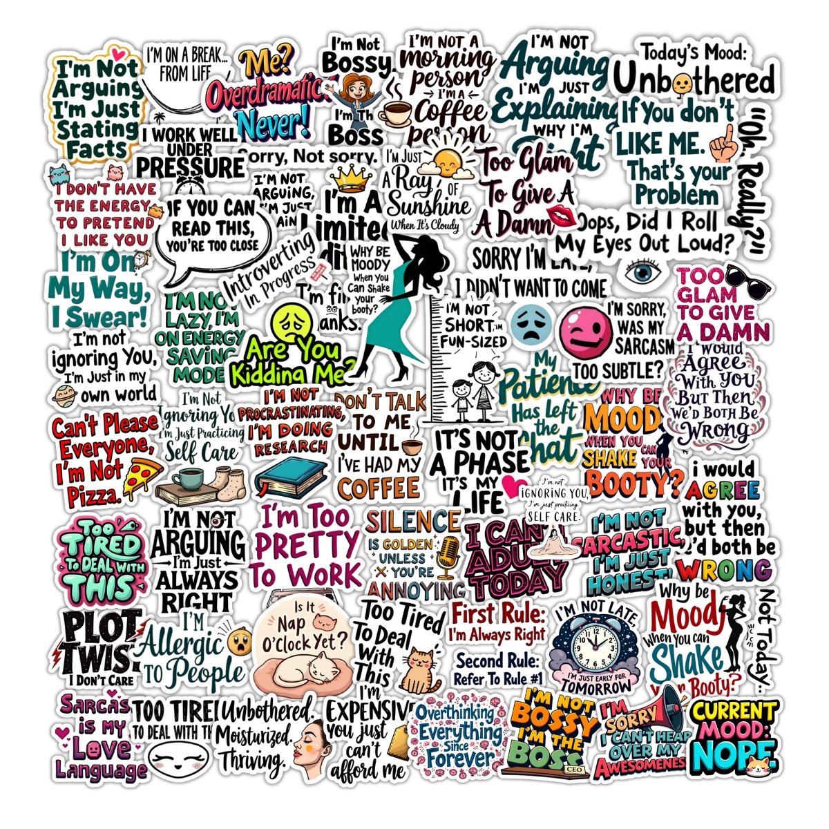 Join the club where the side-eye is strong and the sarcasm is stronger. The Eye Roll Society sticker pack comes with 50+ bold, sassy designs that speak fluent “whatever.” Packed with dry humor, cheeky one-liners, and expressive illustrations, these stickers are perfect for adding a punch of personality to your stuff. Whether you’re decorating your laptop, journal, or water bottle, these premium vinyl stickers let your attitude do the talking — no eye contact required.