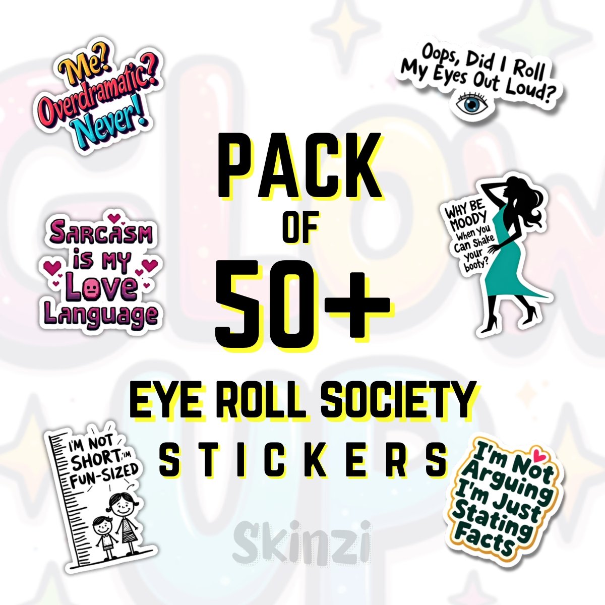 Home STICKY VIBES Stickers Sheets Eye Roll Society Sticker Pack | 50+ Witty & Sarcastic Vinyl Stickers