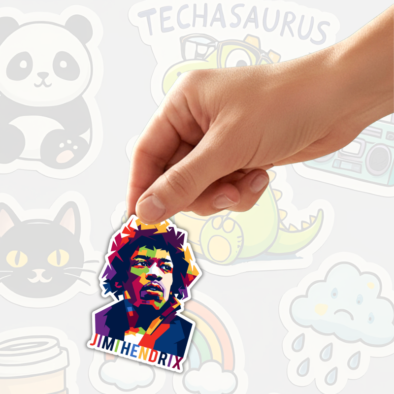 Add a touch of bold personality with our “Jimi Hendrix” die-cut sticker. Designed for those who aren’t afraid to stand out, this high-contrast caution decal is as durable as it is eye-catching. Whether it’s your morning coffee tumbler or your trusty laptop, this sticker sends a clear message in style.