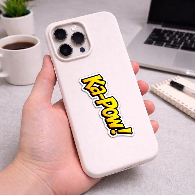 Add a touch of bold personality with our “Ka-pow” die-cut sticker. Designed for those who aren’t afraid to stand out, this high-contrast caution decal is as durable as it is eye-catching. Whether it’s your morning coffee tumbler or your trusty laptop, this sticker sends a clear message in style.