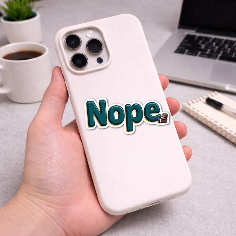 Add a touch of bold personality with our “Nope” die-cut sticker. Designed for those who aren’t afraid to stand out, this high-contrast caution decal is as durable as it is eye-catching. Whether it’s your morning coffee tumbler or your trusty laptop, this sticker sends a clear message in style.