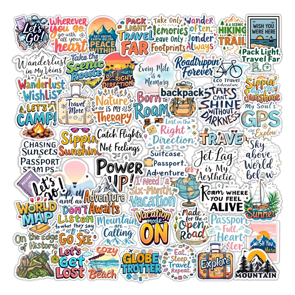 Wanderlust Travel Sticker Pack | 50+ Adventure & Exploration Vinyl Stickersr