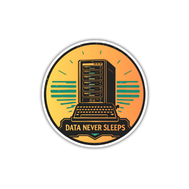 Data Never Sleeps | Vinyl Die-Cut Sticker ₹75.00 Original price was: ₹75.00.₹15.00Current price is: ₹15.00.