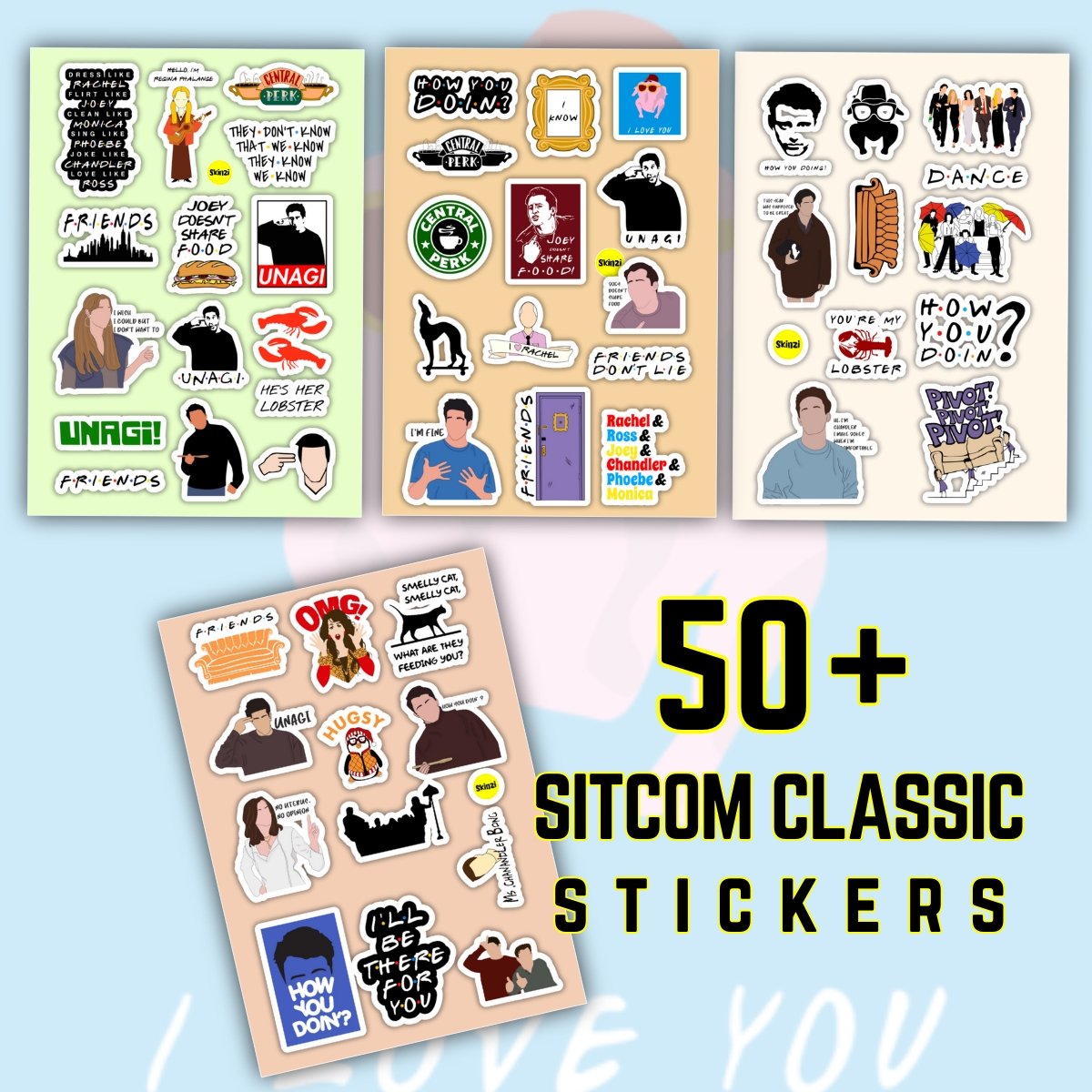 Home STICKY VIBES Stickers Sheets The Sitcom Classic Sticker Pack | 50+ Iconic Sitcom-Inspired Vinyl Stickers